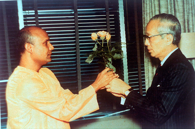 “You have indeed instilled in the minds of hundreds of people here the moral and spiritual values which both of us cherish very dearly. I shall always cherish the memorable occasion of our meeting at the United Nations.”